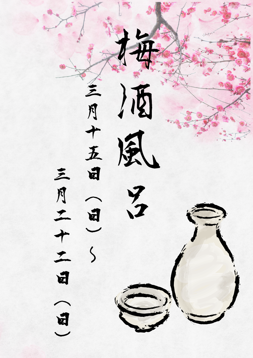 3月15日(日) ~ 3月22日(日)に期間限定で梅酒風呂を開催します。