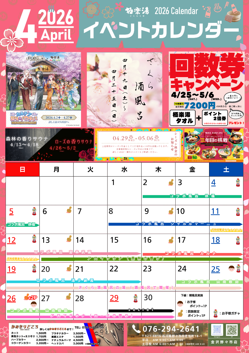 気になるイベントがございましたら、ぜひ極楽湯へお越しください!